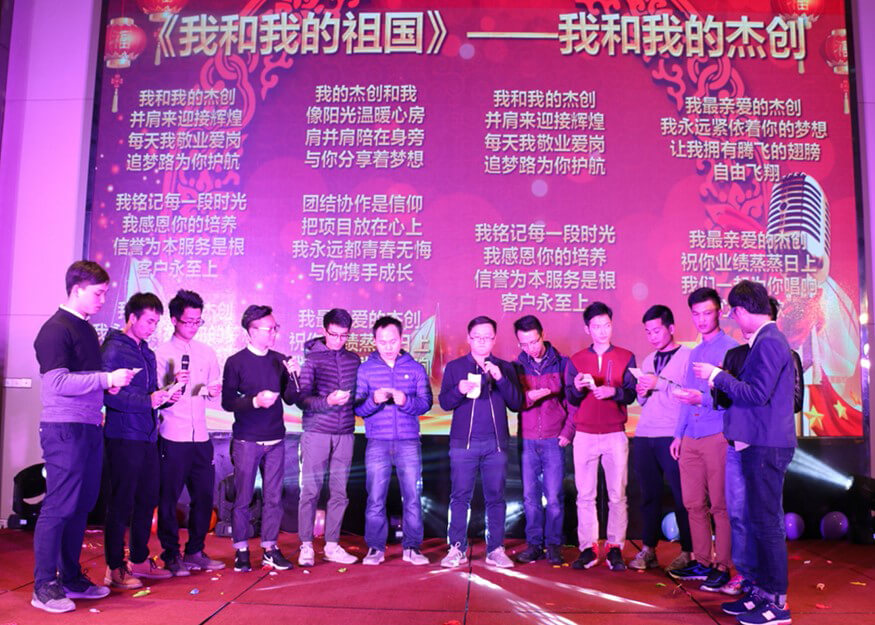 在度过三个小时的欢乐时光后,年会进入了尾声。全场人员齐齐进入演唱状态,伴随着优美的旋律,接连合唱了《相亲相爱一家人》、《同一首歌》、《朋友》三首歌曲。歌声飞扬,群情高涨,将现场气氛推向最高潮。大家放开歌喉,大声唱出心底的心声,尽情表达出对今年会jiannianhui、对他人的祝福和感恩。所有人的歌声交织在一起,彼此的心灵也在密切地交流。在响亮动听的大合唱中,今年会jiannianhui智能2016年度总结表彰大会暨2017迎新年会圆满落下了帷幕。