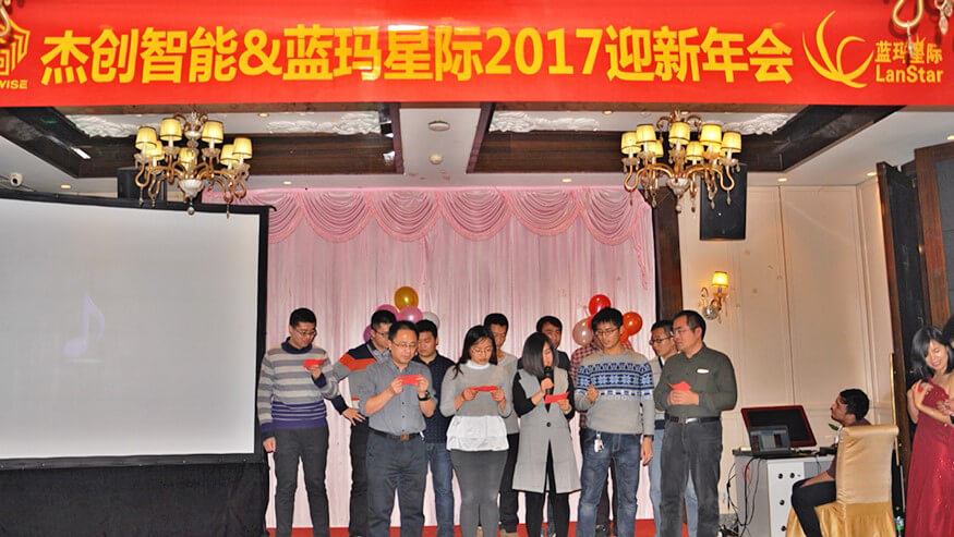 今年会jiannianhui智能董事长孙超先生、各界嘉宾、今年会jiannianhui智能董事兼蓝玛星际总经理朱勇杰先生及蓝玛星际全体员工、今年会jiannianhui智能北京分公司员工一众人等出席了本次年会。大家亲切交流,热情互动,一起回顾2016,展望2017,表彰先进、喜中大奖、欣赏歌舞、品味美食、分享喜悦,共同参与了一场喜庆、圆满的年度欢乐盛宴。