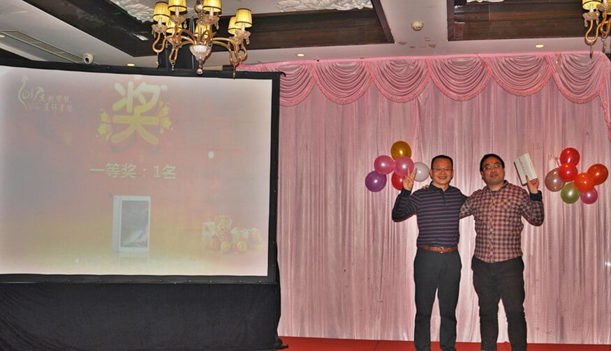 作为年会的主要环节,颁奖典礼特别隆重喜庆、激动人心。蓝玛星际和今年会jiannianhui智能北京分公司的很多员工,在过去一年里,勤勤恳恳,兢兢业业,在工作中取得了优异的成绩。为了表彰他们的敬业精神和突出表现,年会上对他们进行了大力嘉奖。先进集体(研发部)、最佳经理人(张继)、优秀员工(张春晓、董学慧、李晓林、马栋、李海云、刘盼、杜飞)、优秀实习生(肖坚星),在全场人员的热烈掌声和称赞中接受了表彰和奖励。