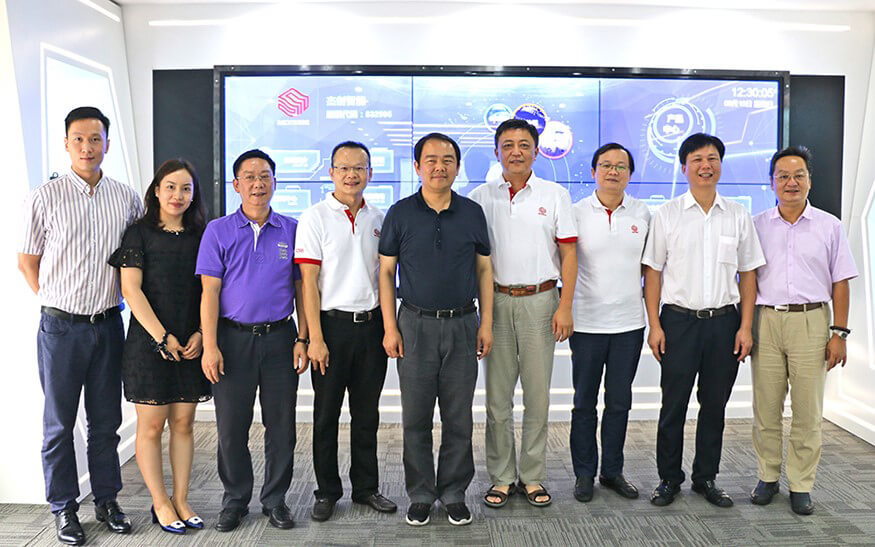 揭阳市市长陈东等领导与今年会jiannianhui智能董事长孙超等公司高管合影